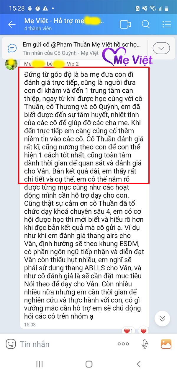 Nếu ba mẹ đang lo lắng cho sự phát triển của con và chưa biết nên bắt đầu từ đâu, hãy nhắn tin với các cô Mẹ Việt, hoặc đặt lịch đánh giá tại hotline: 035 227 5339 để có một lộ trình can thiệp rõ ràng, phù hợp và sát với nhu cầu thực sự của con.