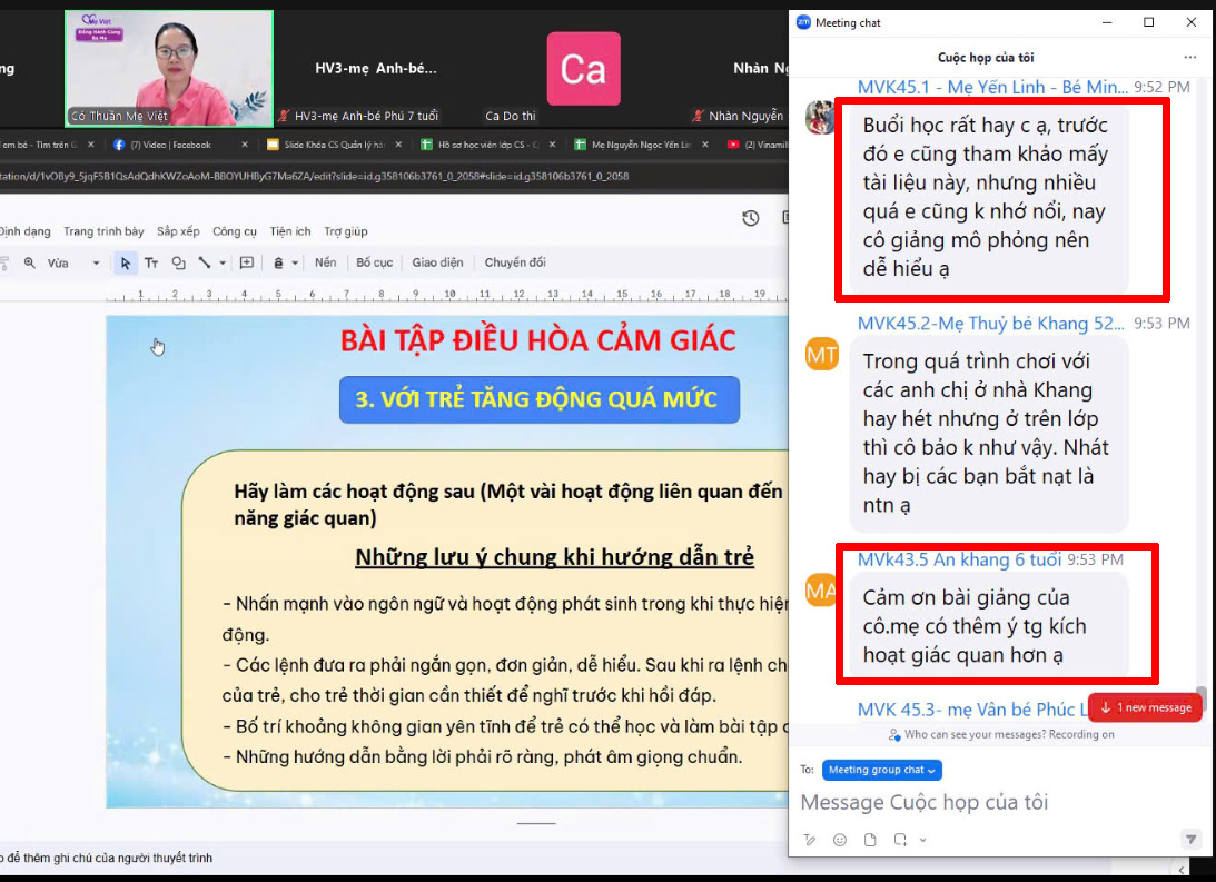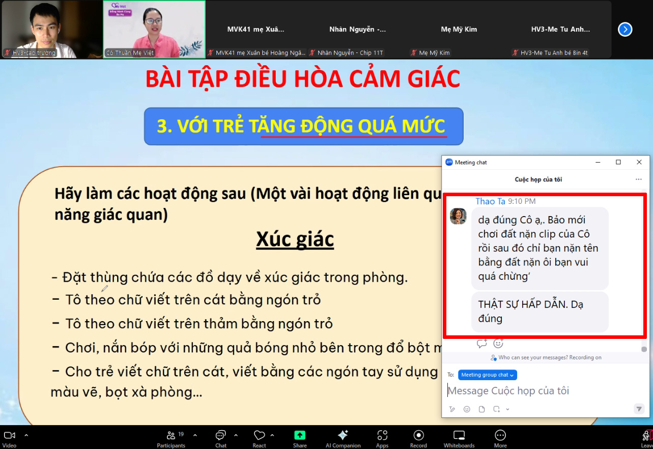 Từ những ngày đầu hoang mang, mệt mỏi chưa đến với Mẹ Việt, đến khi ba mẹ biết cách quan sát, đọc hiểu tín hiệu giác quan và tương tác đúng cách: ba mẹ bớt áp lực hơn, không khí gia đình nhẹ nhàng hơn, và con cải thiện từng ngày.