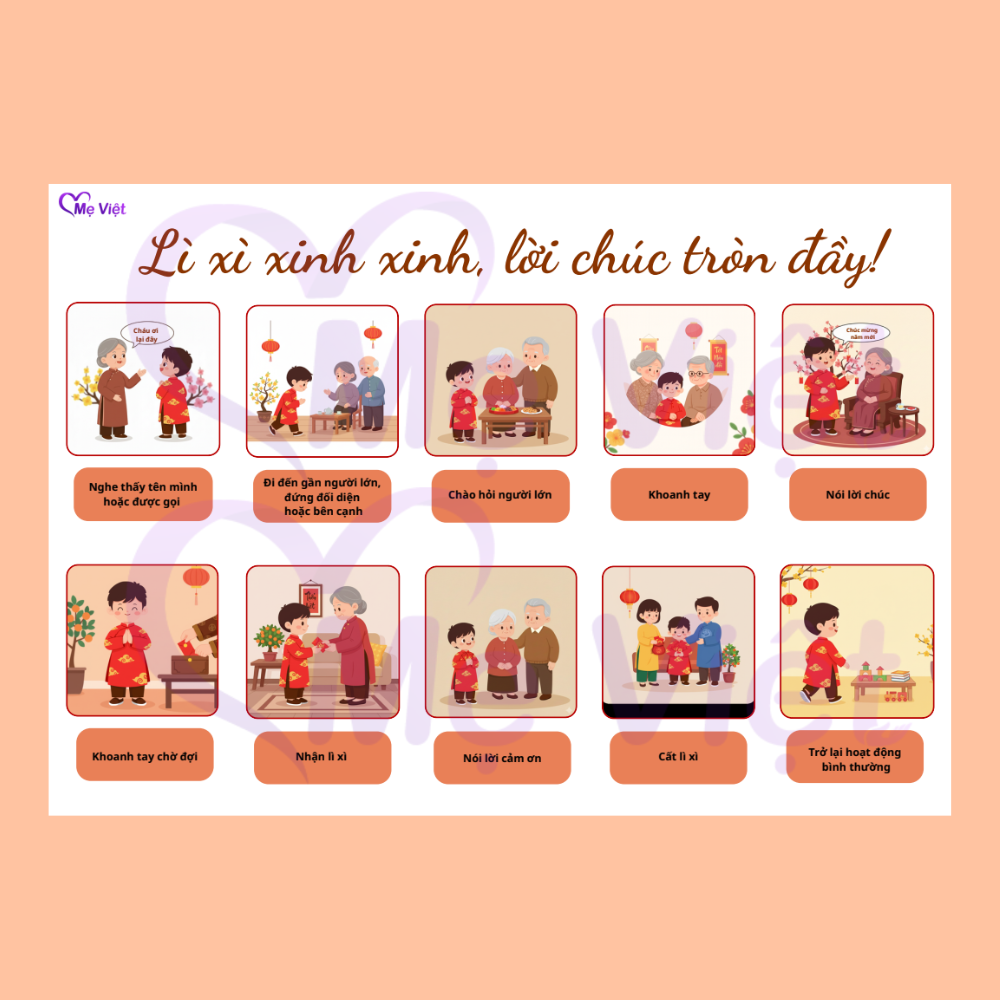 Thẻ quy trình hướng dẫn bé nhận bao Lì xì dịp Tết